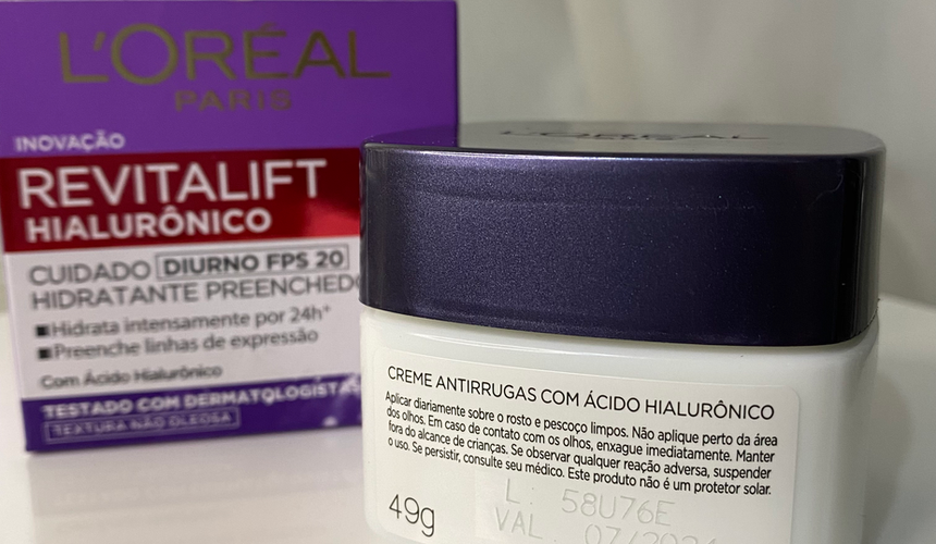 “O novo REVITALIFT HIALURÔNICO CUIDADO com Ácido Hialurônico Puro é um creme facial com ação antirrugas. Sua fórmula hidrata intensamente a pele por 24h e preenche as linhas de expressão. Com textura leve, o novo Revitalift Hialurônico é indicado para todos os tipos de pele, além de também proteger do foto envelhecimento pois possui FPS 20.”